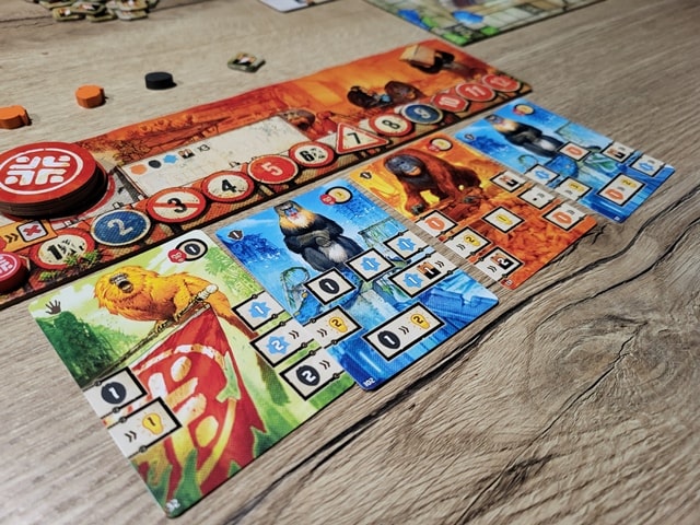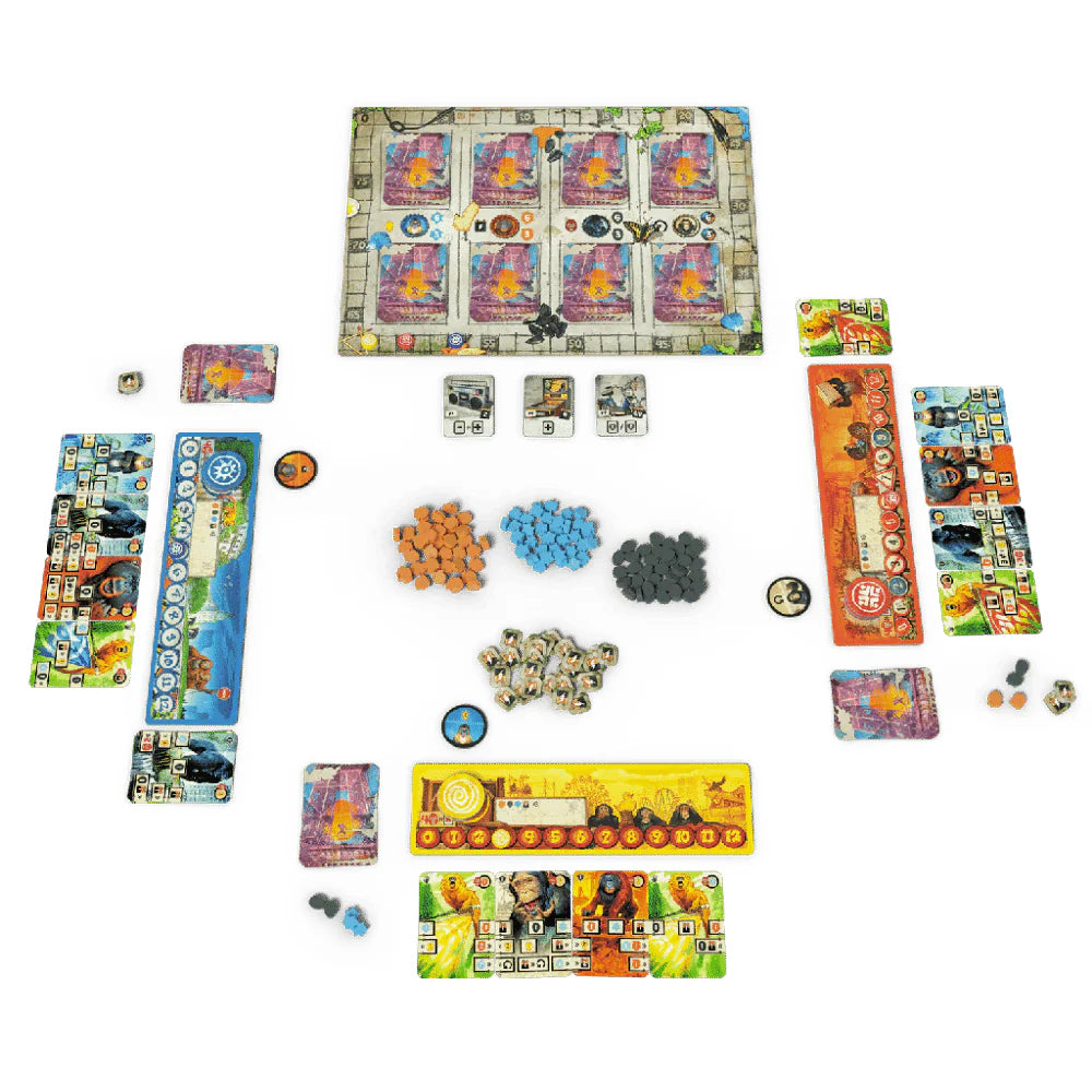 After Us is a deck-building and resource management game featuring an original and intuitive combo system in which players are each leading a tribe of apes. Starting only with tamarins, they combine their cards each turn to collect resources and gather victory points, attracting new apes into their tribe along the way: powerful gorillas, resourceful orangutans, versatile chimpanzees, and wise mandrills. The first player to obtain 80 points prevails in the race to collective intelligence — and wins the game.