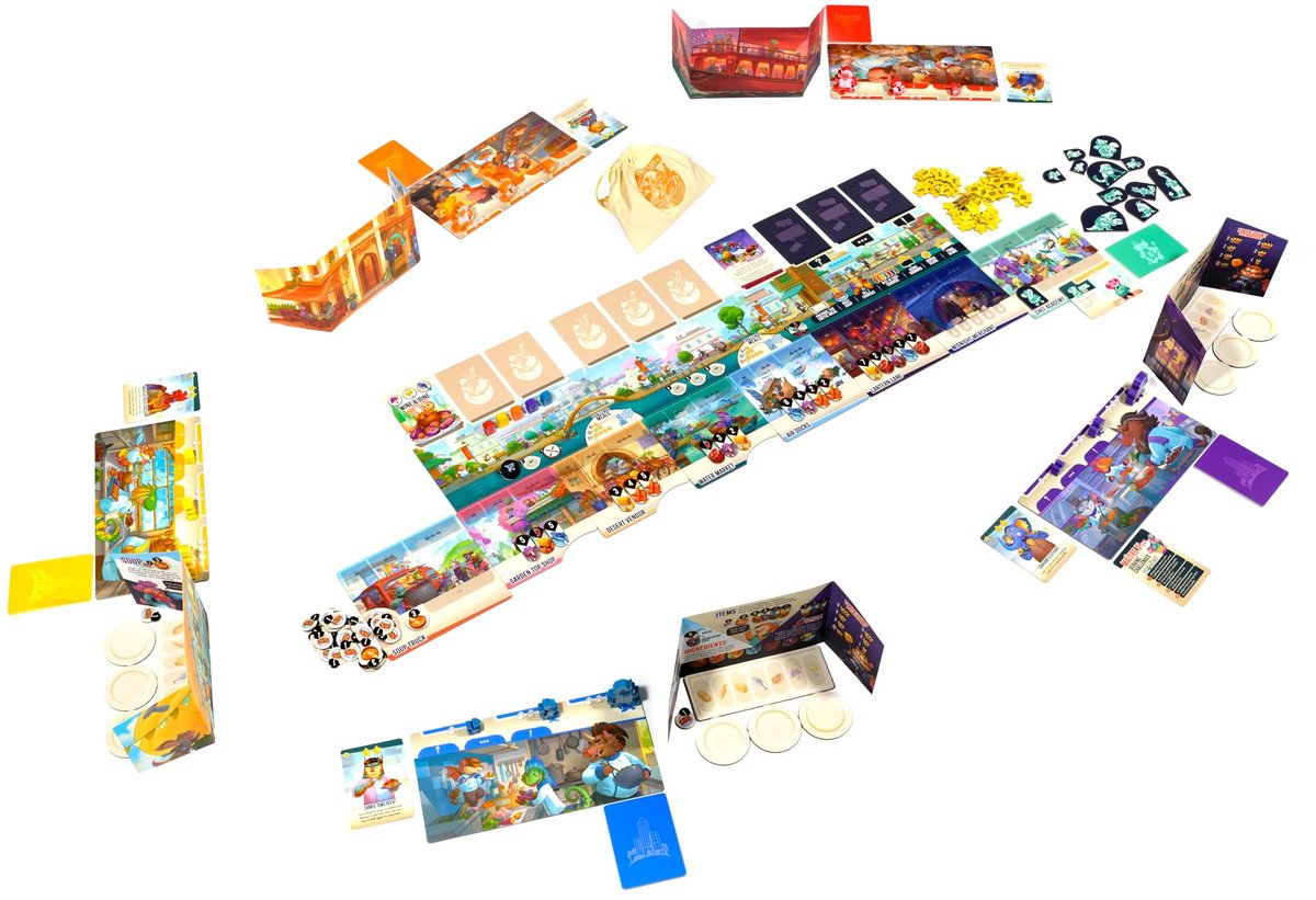 Each round, new random ingredients are placed in locations throughout the city. Players simultaneously and secretly plan which locations to send their three chefs to, hoping to collect the best ingredients. Some chefs are fast, but can gather only one item, while others can carry three items but arrive late. Rumors are also available at locations and provide guidance on what the critic desires.