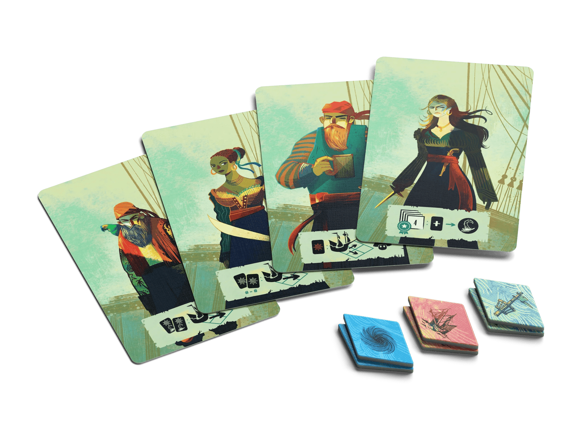 Strap up your piratical boots, and navigate your ship through turbulent waters in Sail, a co-operative trick-taking game for two players. Reach the end of this dangerous deep end, and avoid taking damage from the Kraken to win the game together...or your crew will be sleeping with the fish!