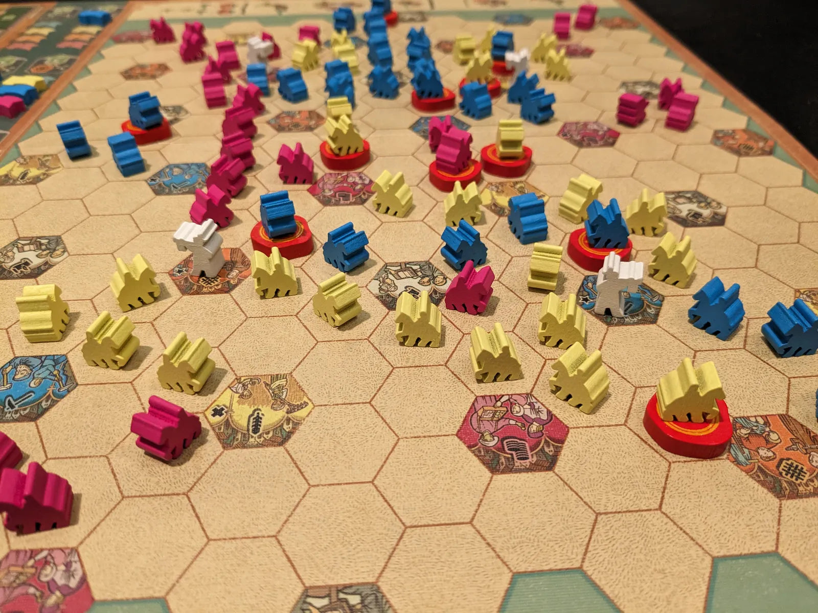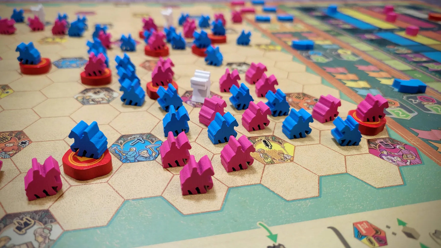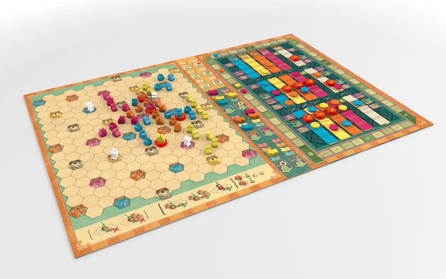 Spelers moeten kiezen tussen twee concurrerende strategieën: lange ketens van hun gezanten bouwen om synergieën en doelstellingen te bereiken, of kleinere, afzonderlijke groepen gezanten vormen om tijdig punten te scoren in steden. Beide strategieën leveren overwinningspunten op, maar je overwinningspunten zijn waardeloos als je niet ook het einde van de aangegeven succeskolom bereikt.