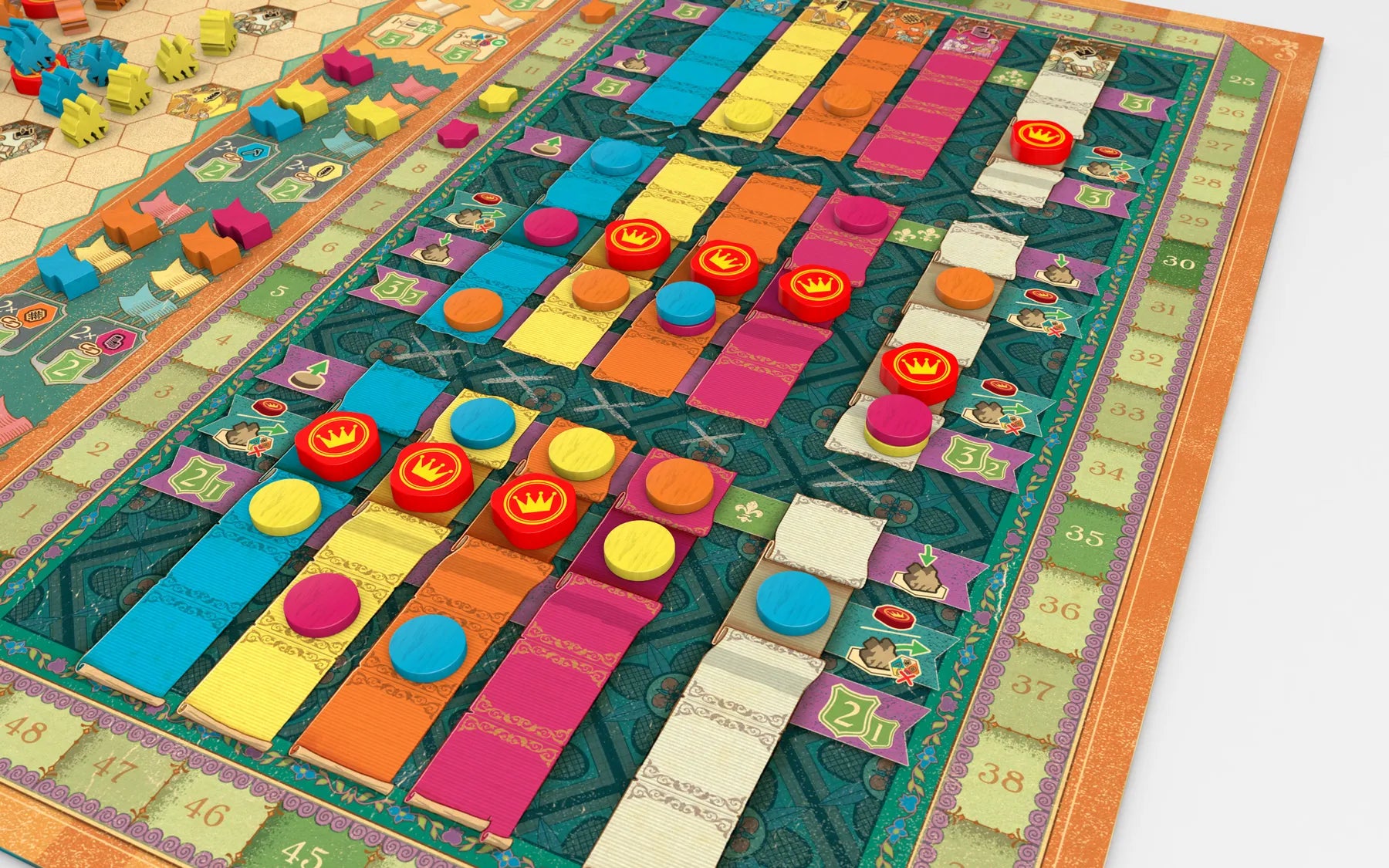 Door stadspunten te scoren, ga je verder in de succeskolom van die stad en verdien je bonussen wanneer je erlangs komt. Bonussen kunnen bestaan uit het verdienen van overwinningspunten, verder komen in een succeskolom, het claimen van een officieel zegel, het herpositioneren van een gezant of zelfs het verkrijgen van een extra beurt. Door zorgvuldige timing en slimme plannen kunnen spelers een kettingreactie van spannende bonussen activeren die het momentum in hun voordeel doen omslaan.