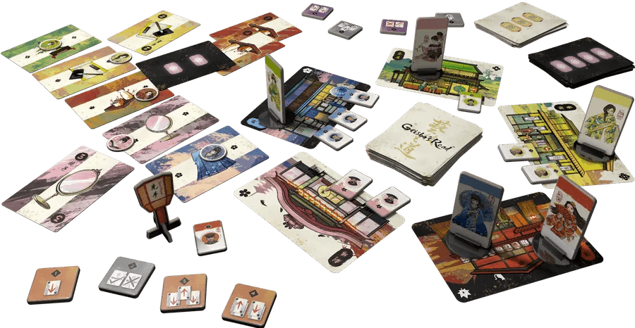 Welkom terug bij Hanamikoji! Hanamikoji: Geisha's Road is een spel voor twee spelers, gebaseerd op "Hanamikoji", met een nieuw bewegingssysteem voor geisha's en een rondelsysteem om de strategie te diversifiëren. Het is een competitief strategiespel vol impliciete bedoelingen, verhulde boodschappen en verborgen acties. Spelers vertegenwoordigen rivaliserende maar vriendelijke opdrachtgevers die Yoko, Tomoyo en anderen steunen op hun reis van leerling (maiko) tot volwaardige geisha (artiest) en misschien zelfs eigenaar (okaasan) van hun eigen etablissement.
