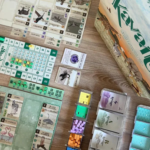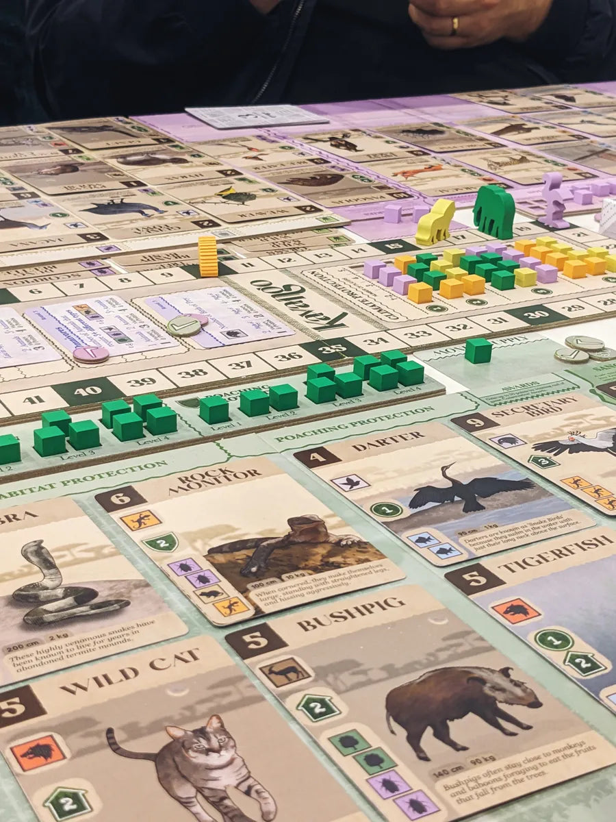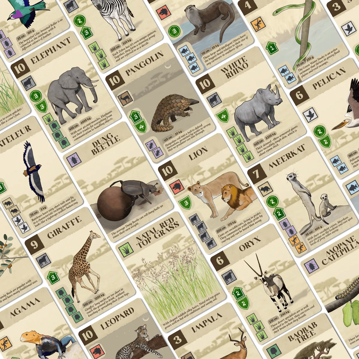 Reis naar de uitgestrekte wildernis van Zuidelijk Afrika en kruip in de huid van een natuurbeschermingsdeskundige. Ga op avontuur en transformeer je eigen unieke landschap tot een bloeiend natuurreservaat. In drie snelle rondes met gelijktijdige beurten en kaarttrekking bouw je een welvarend ecosysteem op. Naarmate je natuurreservaat groeit, moet je onderzoekstaken voltooien om geld te verdienen dat je kunt investeren in bescherming en een veilige haven kunt bieden aan kwetsbare en bedreigde dieren. Naarmate het spel vordert, worden je keuzes moeilijker en je strategie complexer, terwijl je ernaar streeft het natuurreservaat met de hoogste score te bouwen.