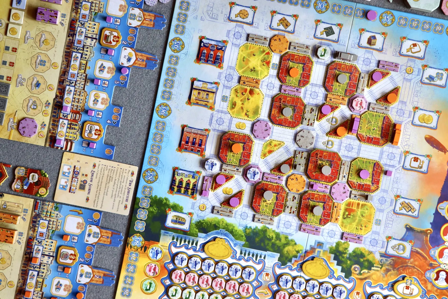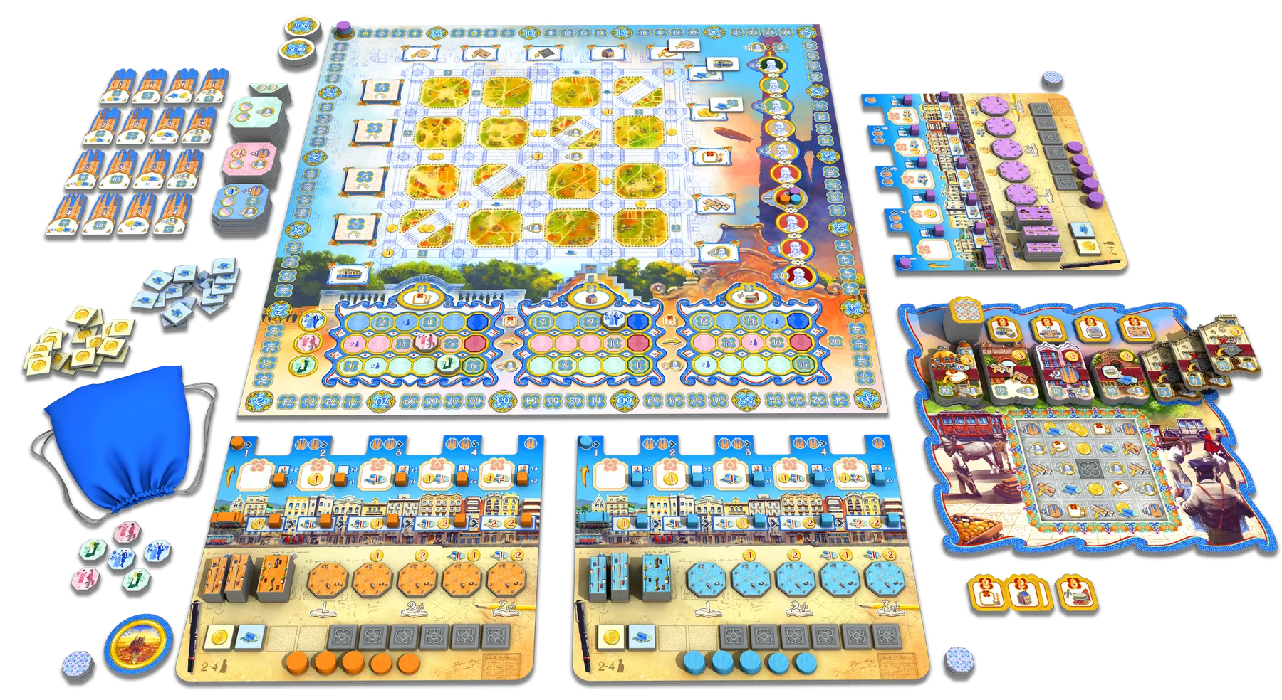Barcelona is played over a variable number of rounds interrupted by three scoring phases before a final scoring phase. Every round, each player takes a single turn consisting of two or more actions, a building phase, and then preparation for their next turn. At the end of the game, the player with the most points wins.