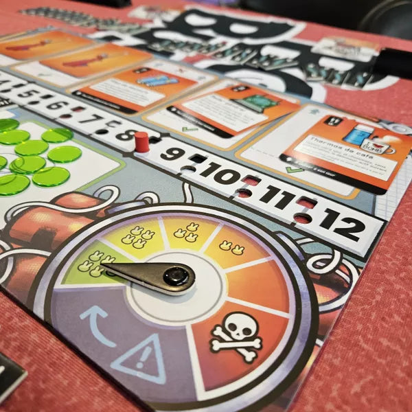 In Bomb Busters, there is a set of 48 normal wire cards numbered 1-12 (4 of each value) with some yellow and red wire cards. These are dealt out. Each mission is different, but your goal is always the same: go through all 12 numbers without blowing up!