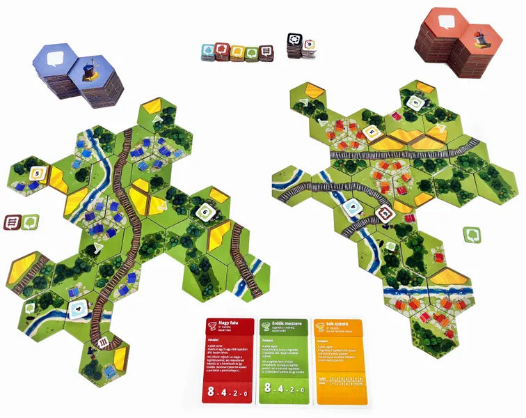 Dorfromantik: The Duel allows two players or two teams to compete. And with two copies even up to four people can play. Who will create the most beautiful world of hexagonal landscapes? Who will be better at fulfilling the villager's orders while also mastering the challenge of new assignments?