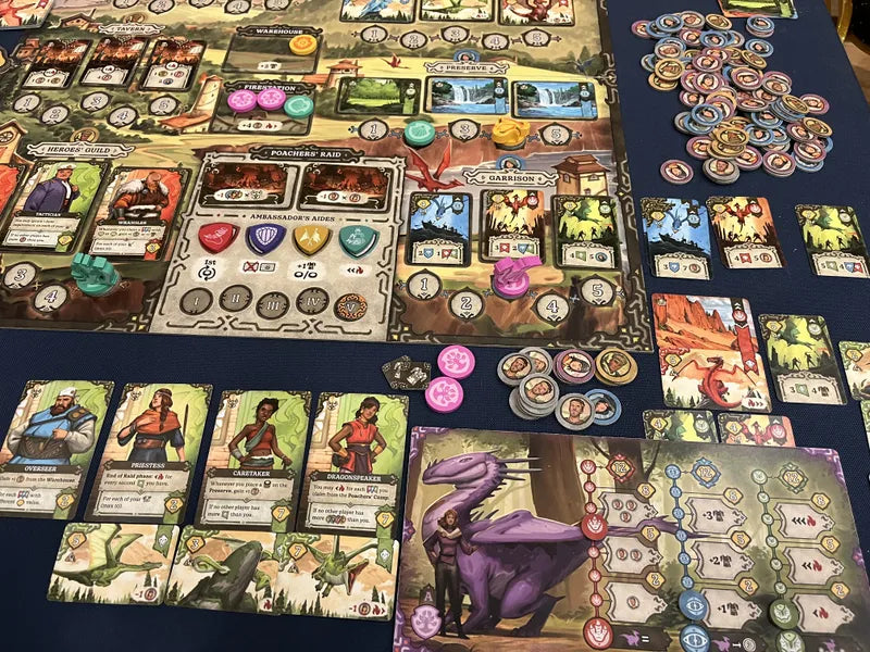 Emberheart is a quick-playing, medium-weight worker placement game . As one of the King’s Champions, your task is to recruit heroes, rescue dragons and expand their preserves, train your own dragon companion, and oppose the roaming poachers.