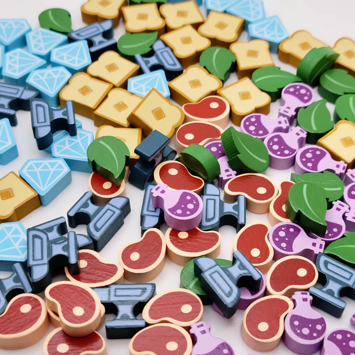 In Flamecraft, 1-5 players take on the role of Flamekeepers, gathering items, placing dragons and casting enchantments to enhance the shops of the town. Dragons are specialized (bread, meat, iron, crystal, plant and potion) and the Flamekeepers know which shops are the best home for each. Visit a shop to gain items and a favor from one of the dragons there. Gathered items can be used to enchant a shop, gaining reputation and the favors of all the dragons in the shop. If you are fortunate enough to attract fancy dragons then you will have opportunities to secure even more reputation.