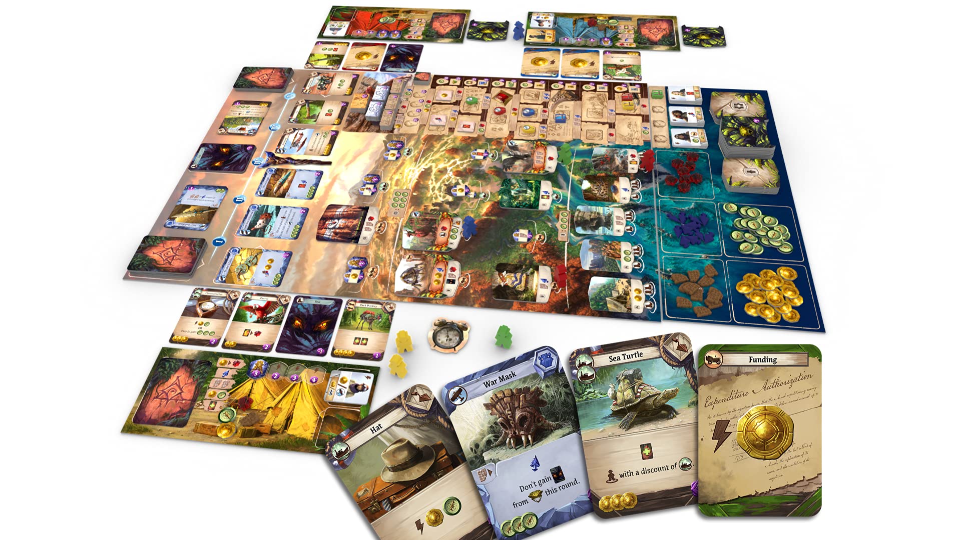 Decks are small, and randomness in the game is heavily mitigated by the wealth of tactical decisions offered on the game board. With a variety of worker actions, artifacts, and equipment cards, the set-up for each game will be unique, encouraging players to explore new strategies to meet the challenge.