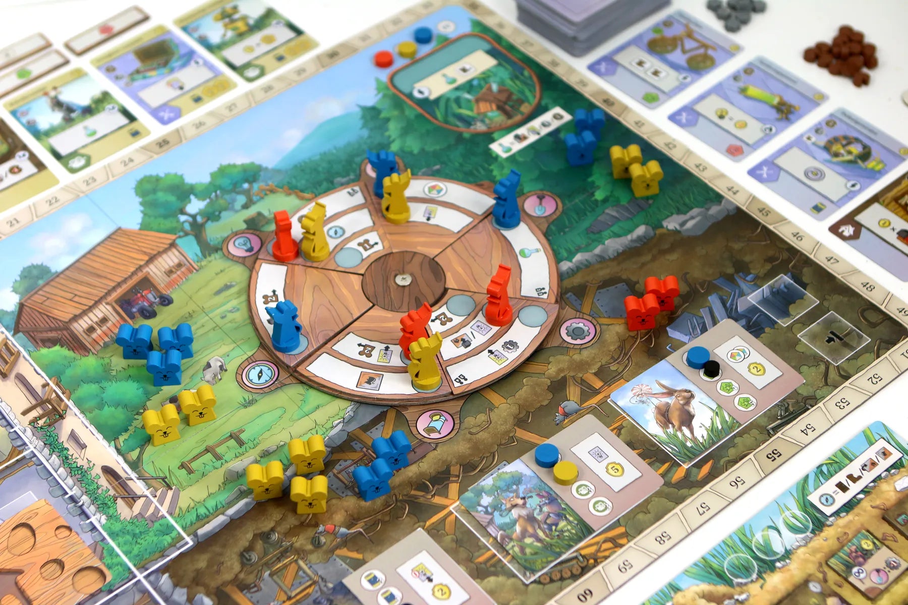 In Rats of Wistar, you play the role of one of the four rats who organized the escape from a lab. As such, you will have to lead your family to prove that you are the most deserving of leading the entire colony. Thanks to your extraordinary skills, you will be able to explore the Farm until you reach the pantry to be able to grab the appetizing cheese; exploiting the artifacts abandoned by humans at the edge of the Wood, you will create new inventions and expand your lair under the trees, digging new rooms and building new beds. You will meet native rats and mice that you will welcome into your family, and when necessary, you will visit the Alchemist mouse to gain some extra advantage.