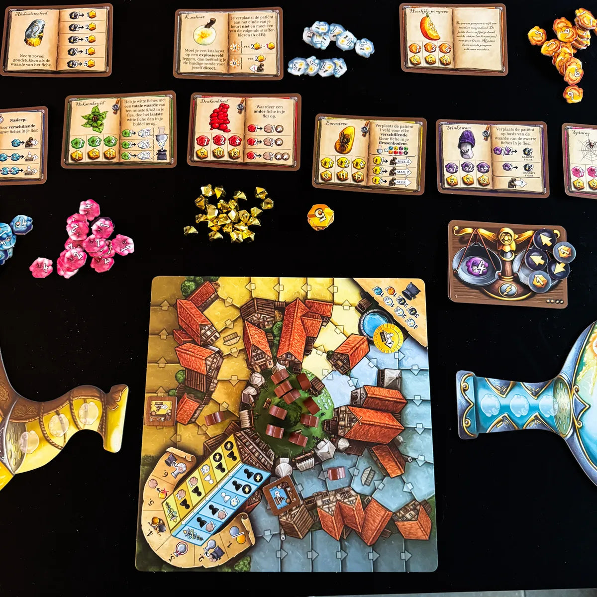 There is always something happening in the lively market square of Quedlinburg. And two quack doctors are at the very heart of it all, attracting the crowds with their most enticing hyperbole and fanfare. The game involves maximum concentration on both sides, as every move will directly affect your opponent. The aim is to try and lure any undecided patients to your market stall, because every patient you treat here will strengthen your reputation in the quacks’ Guild Hall. So which one of you will be the next Guild Master of the Quacks of Quedlinburg?